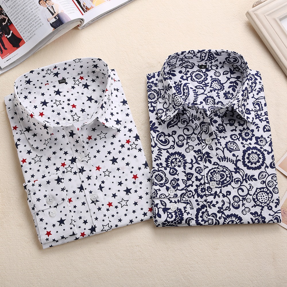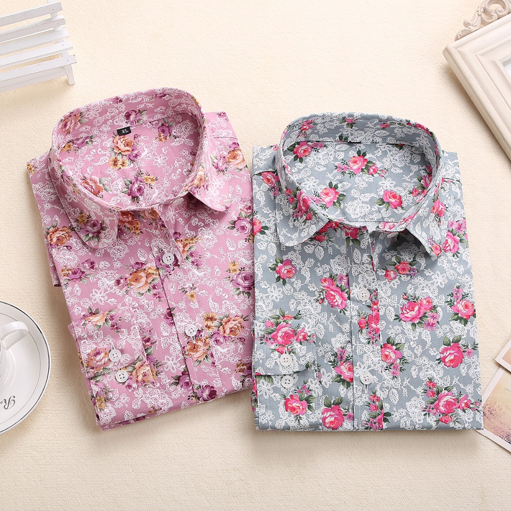 > Damen Bekleidung > Shirts > dioufond neue Blumen lange Ärmel Vintage Bluse dreh Kragen Hemd Feminino Damen Blusen Damen