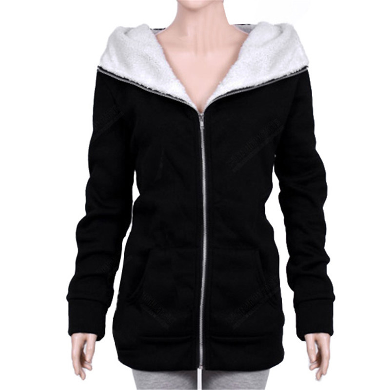> Damen Bekleidung > Hoodies > Herbst Winter Damen warm Zip up Dicken Vlies OberBekleidung Kapuzenpulli Hoodies Mantel Jacke Schwarze Graue plus 7