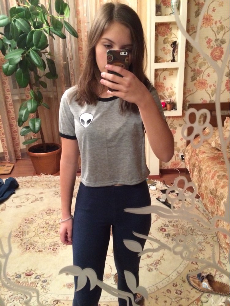 > Damen Bekleidung > Tops > kurze Ärmel alien Pflanzen Womensprint T Shirt Schwarz Weisse T Shirts beim Top alien Shirt Sommer kurz