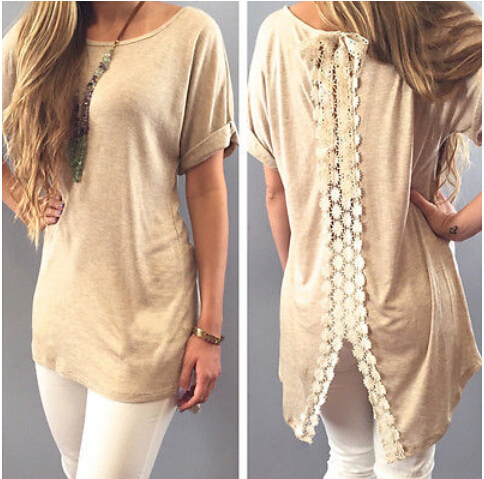 > Damen Bekleidung > Tops > nach der aufspaltung Spitzen Bluse heften Mode Damen Spitzen T Shirt Sommer Weste Top kurze Ärmel Locker