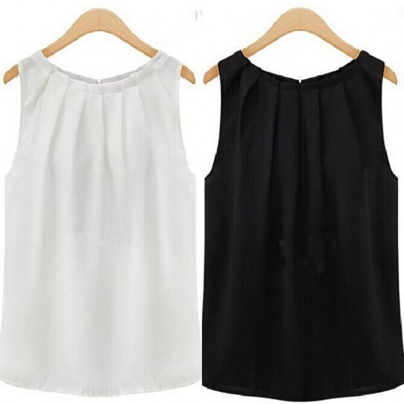 > Damen Bekleidung > Tops > Damen Schwarz Weisse o Hals ÄrmelLoses Sommer Tank Top Damen sexy Weste Chiffon Top einfache lässige Hemdchen