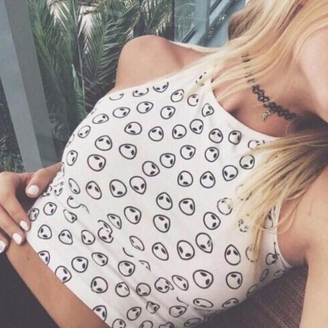 > Damen Bekleidung > Tops > Sommer Stil Weisse außerirdische Print Schulterfreien Top Damen sexy Schulterfreien Top Tank Häkeln Bustier Pflanzen