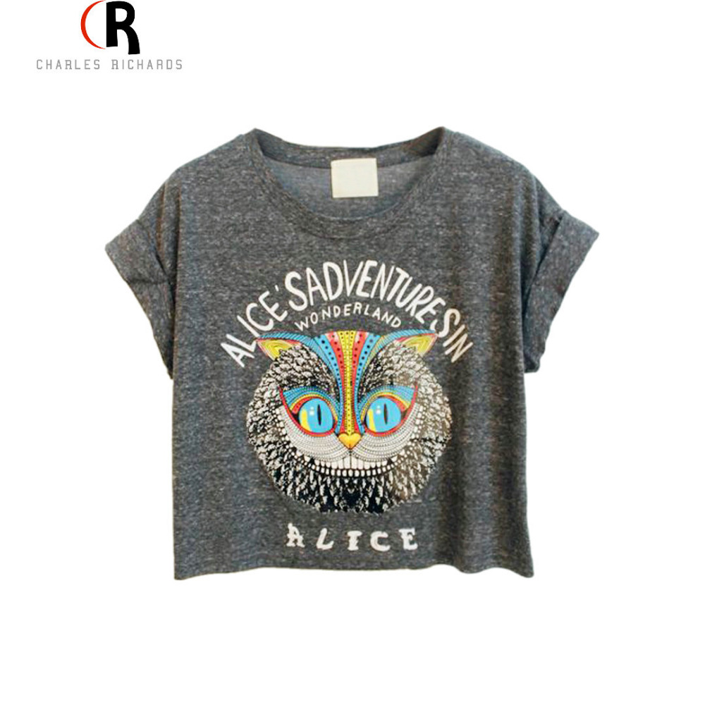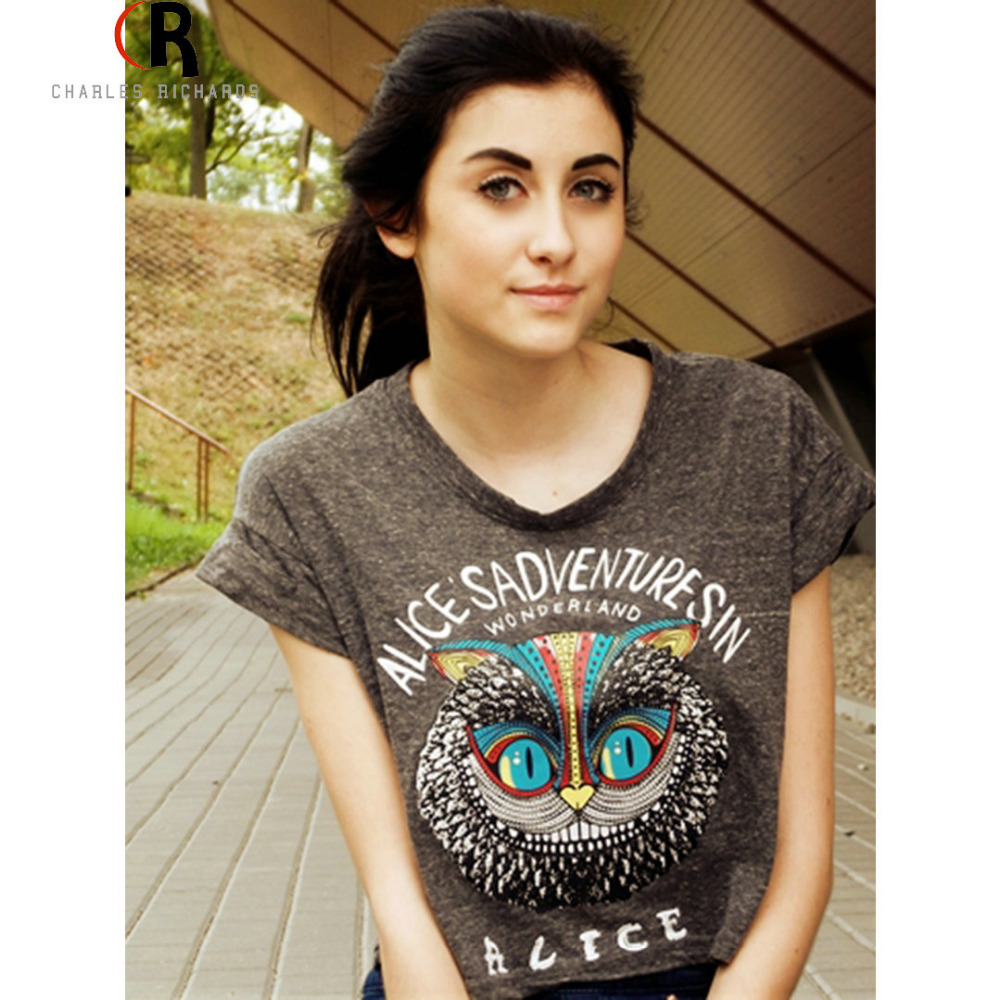 > Damen Bekleidung > Tops > neuen Damen Locker Gray Eule Muster Pflanzliche Top mit alice & Abenteuer im wunderland Buchstaben Drucken