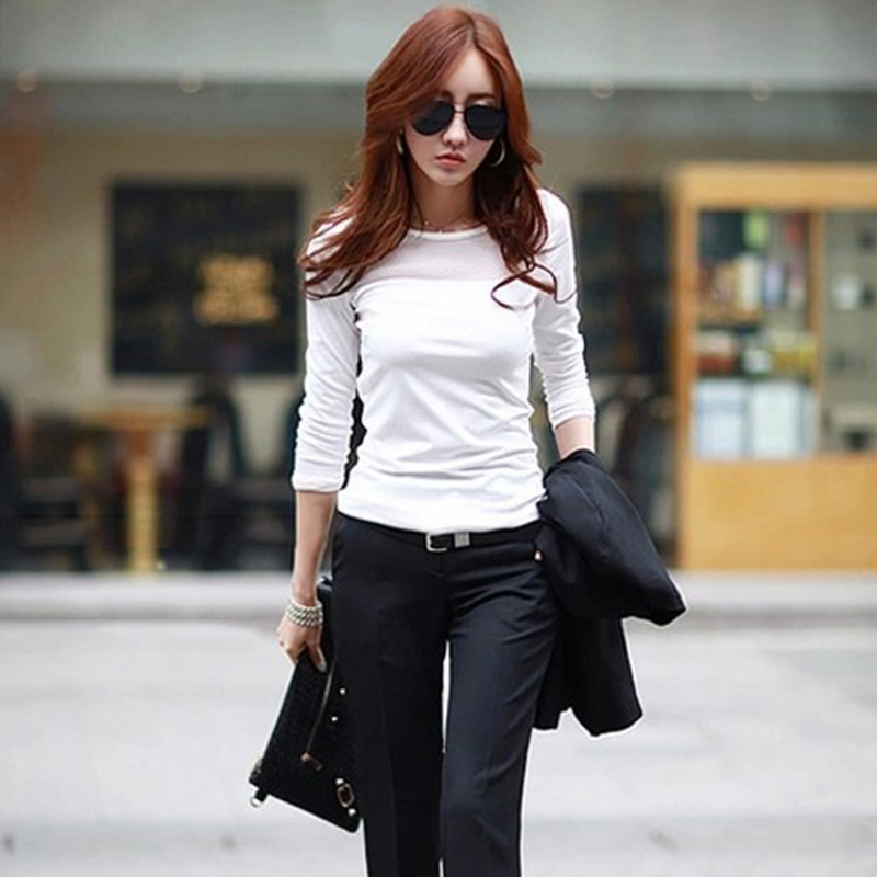 > Damen Bekleidung > Tops > Koreanische Mode Damen Summer Style Baumwolle Spitzen Mesh Patchwork lange Ärmel T Shirt Damen