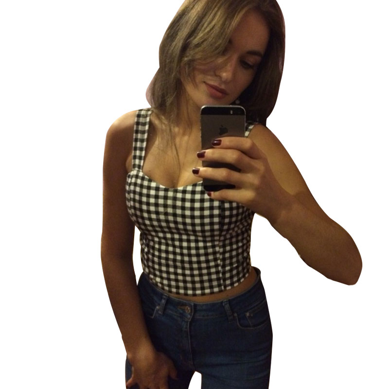 - tops: Top Cropped Plain Elegant Plaid Dill frauen tops