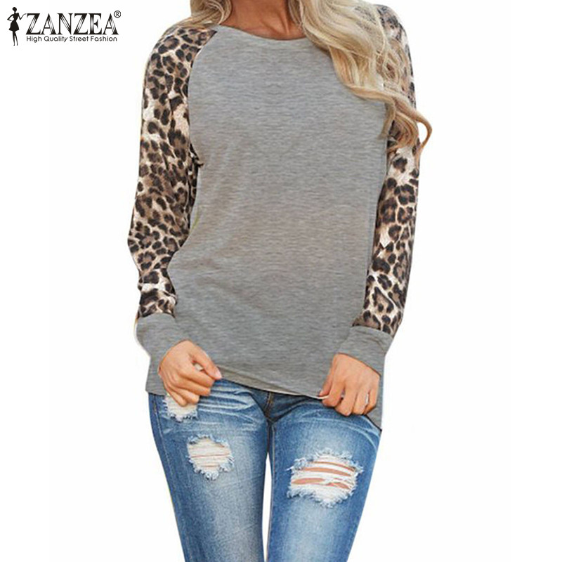 > Damen Bekleidung > Tops > Mode neue Damen Damen im Frühjahr im Herbst lange Ärmel Leopard Locker lässig Tees T Shirt plus Grösse