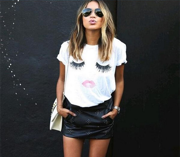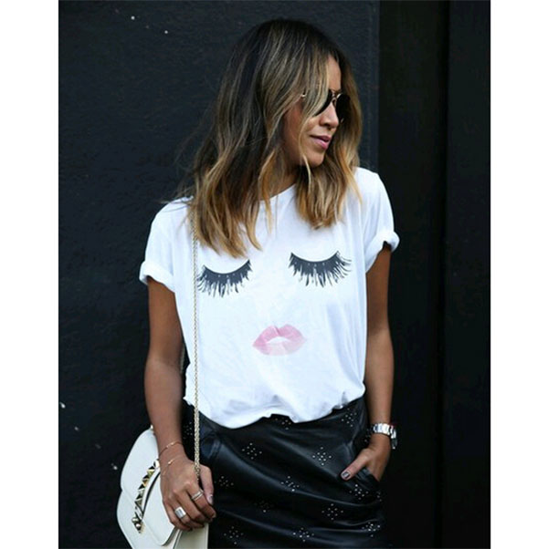 > Damen Bekleidung > Tops > Sommer Damen casual T Shirt T Shirt Wimpern Lippe Print Losen Tees Frau Hemden