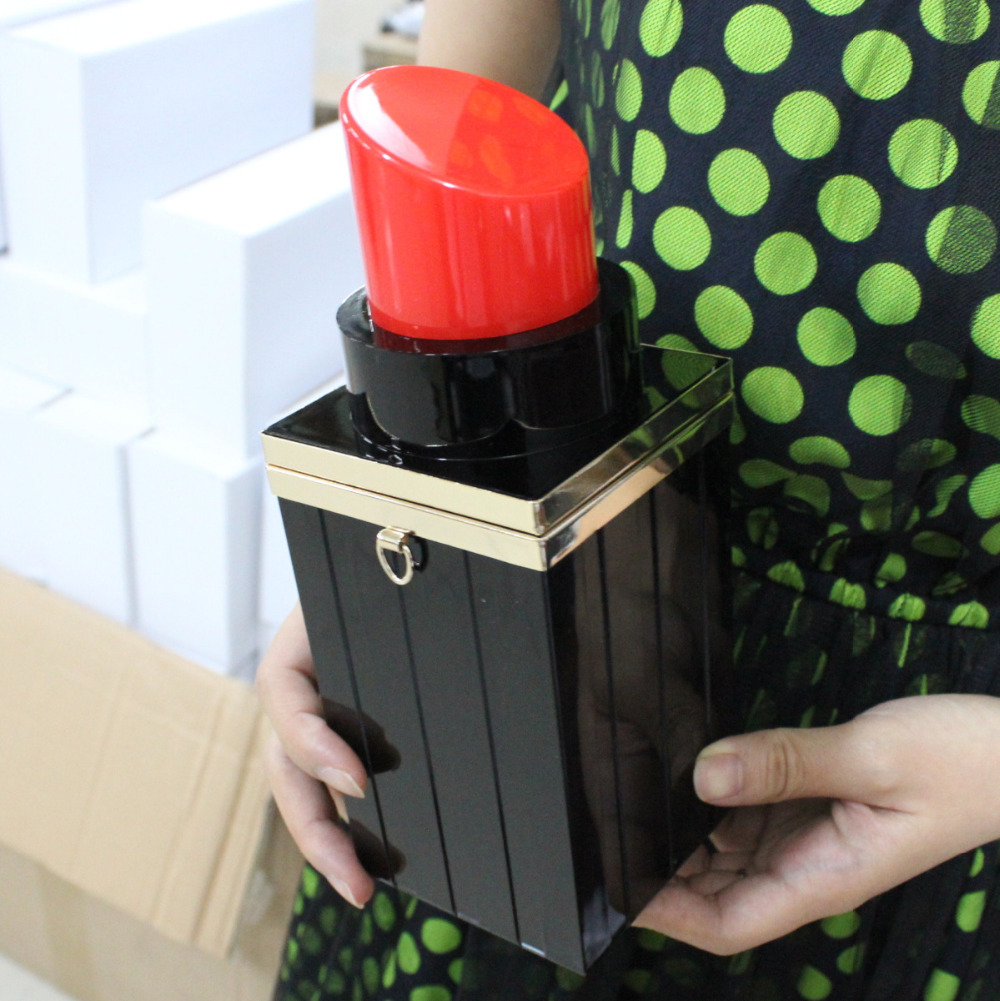 > Top Angeboten > heißer Verkauf Schwarz Acryl Lippenstift Handtasche Abendgesellschaft Hand Tasche Kleine Kette Umhängetasche