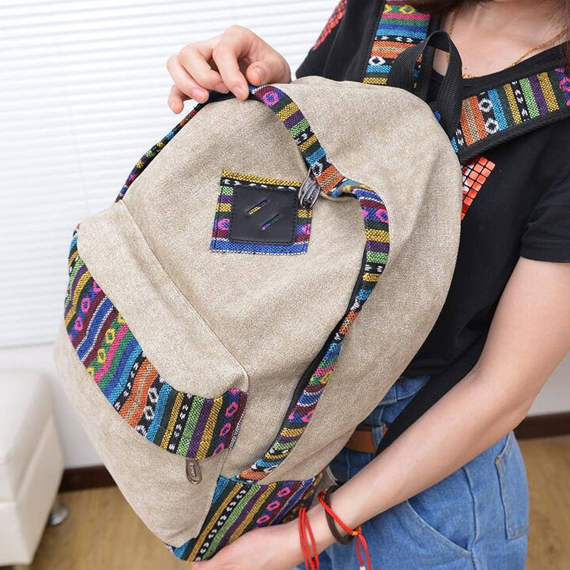 > Taschen Geldbörsen > Rucksäcke > weibliche Damen ethnische kurze leinwand Rucksack adrette Schultasche Dame studentin schule Reise laptop Tasche