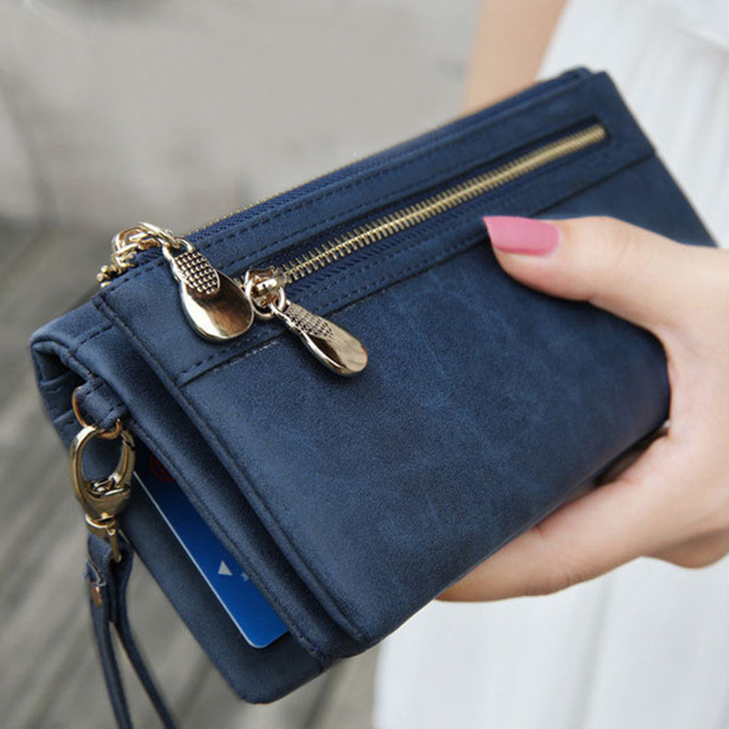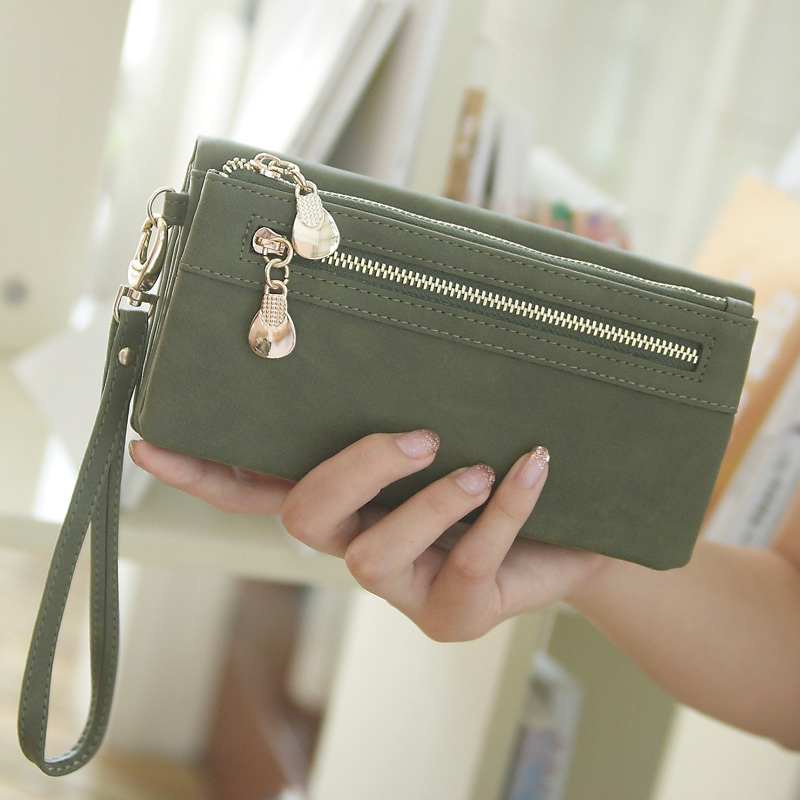 > Taschen Geldbörsen > Geldbörsen > Mode Damen Geldbörsen 9 Farben Matte Pu Leder Doppel Reißverschluss Weiche Mappe Damen Langen Tag Kupplung