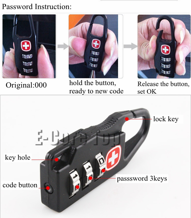 > Taschen Geldbörsen > Tasche Zubehör > Rückstellbare 3 3 stellige Kombination Code Vorhängeschloss Reisegepäck Sicherheit Metall Shell Rucksack