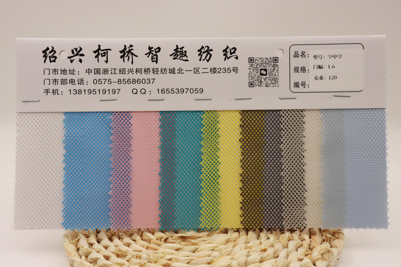 pattern solid color Main process dyeing use Outdoor wear/sportswear, linings, other clothing fabrics color multi color mix Product name net Weight 120g/㎡ Element Polyester Weaving style knitting fabric weave warp knitting Door width 160 cm Article number Empty in the air