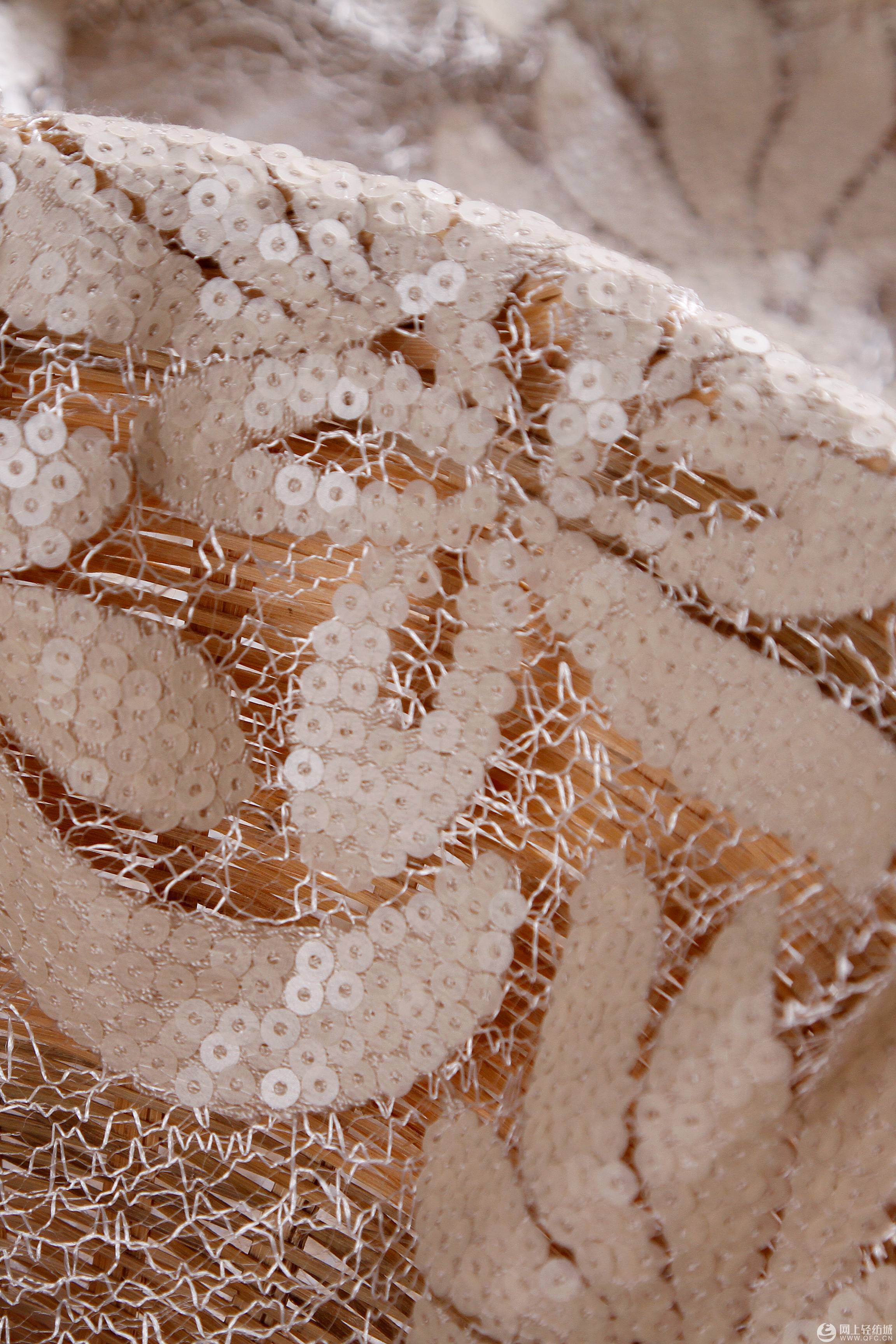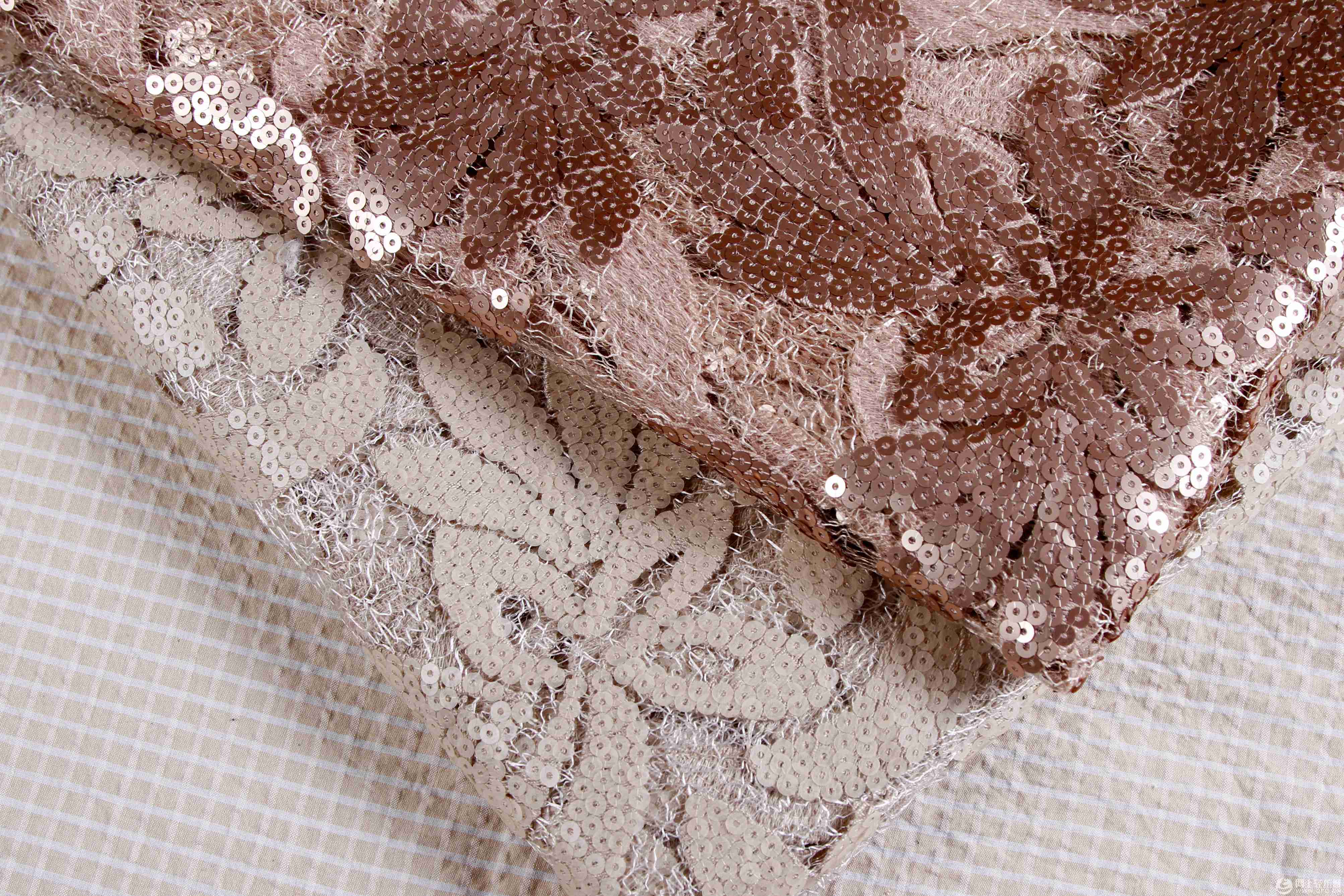 > Fabric > embroidery > Two-color 3mm three-dimensional single-sided rose sequin embroidered fabric wedding dress/dress customization manufactur