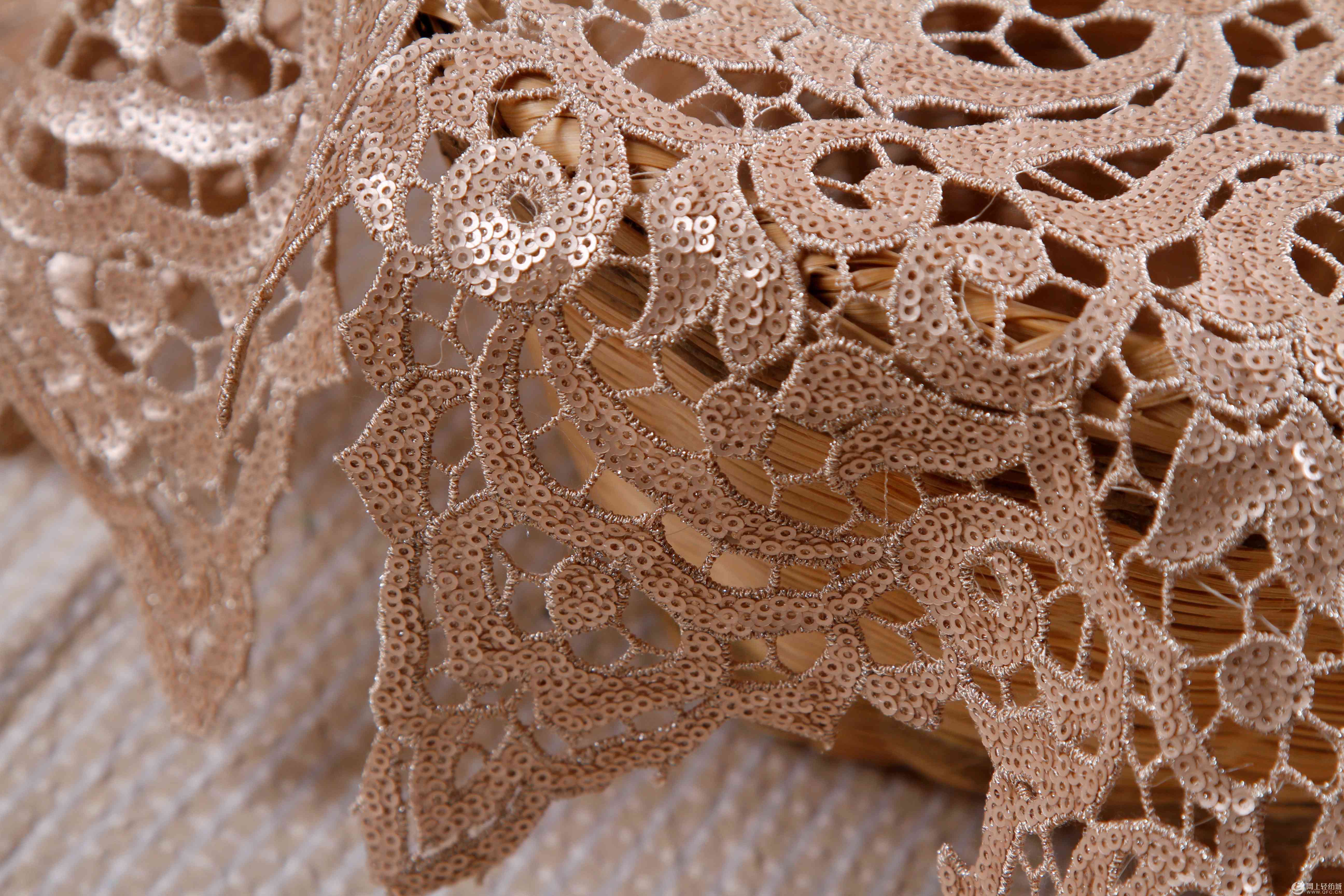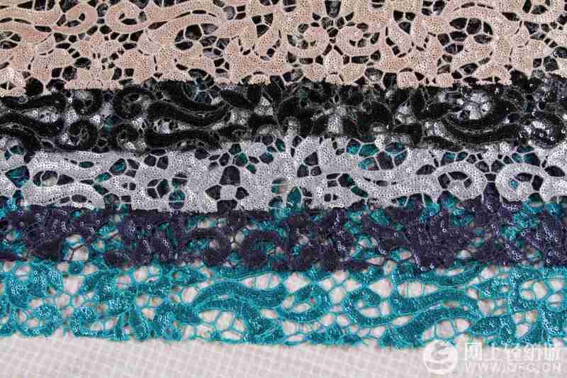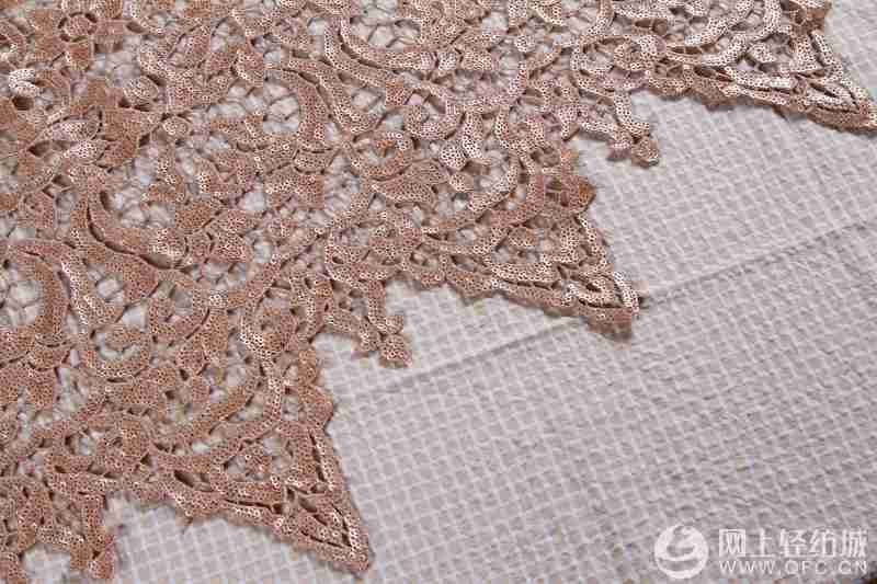 > Fabric > embroidery > 150D 3mm sequin retro water-soluble gold thread embroidery fabric wedding dress/dress customization manufacturer wholesa