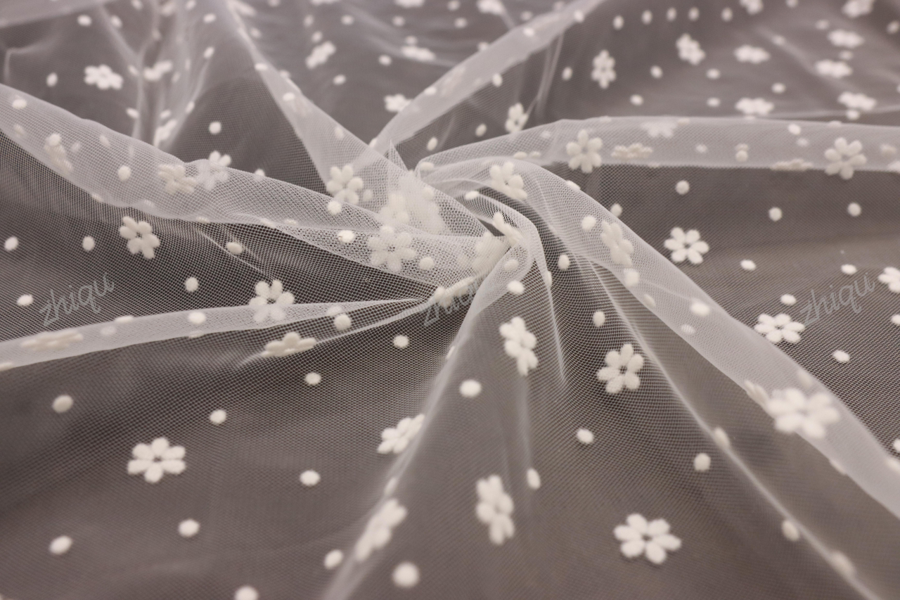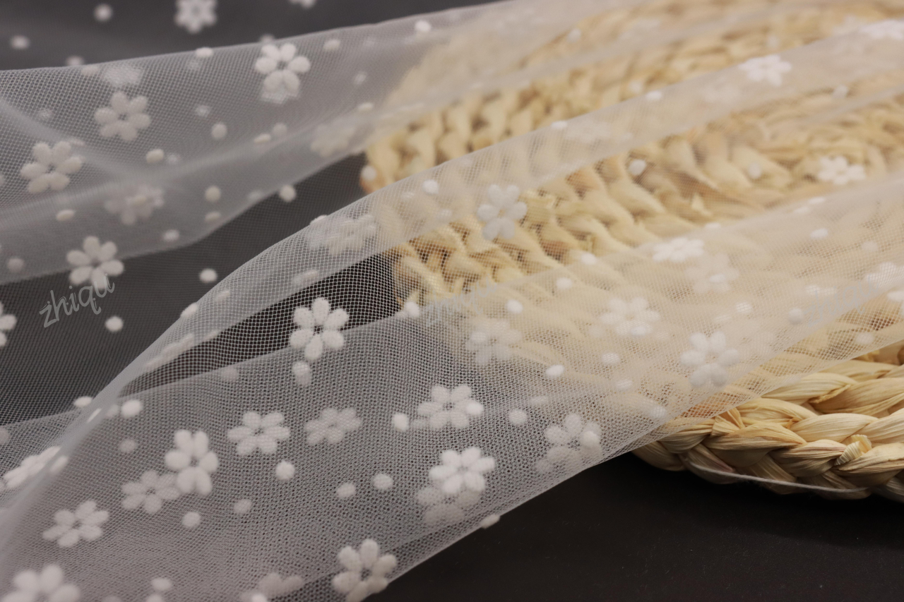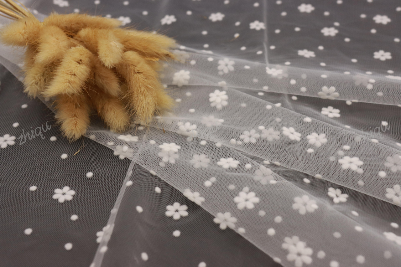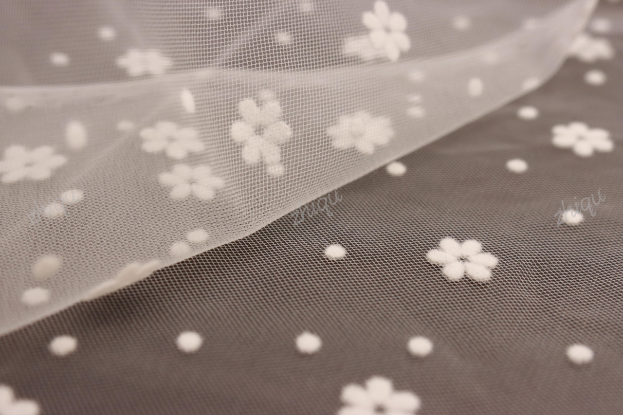 Ordinary mesh flocking embroidery mesh fabric spring and summer fashion paving material is pattern: solid color, composition: polyester, color: white, black, product name: mesh embroidery, weaving method: knitting, clothing fabric: dress/wedding dress, lining