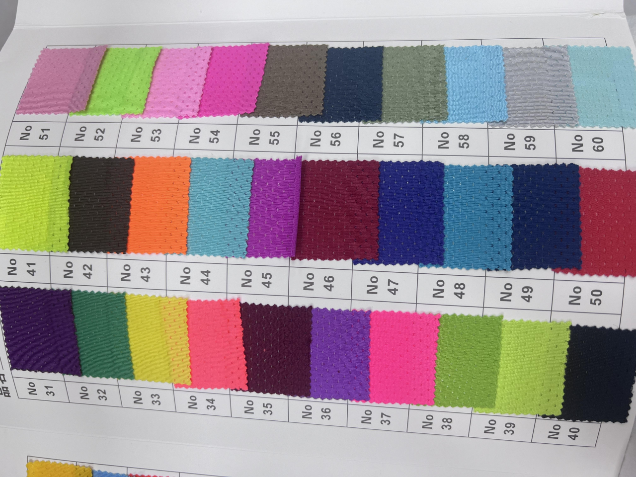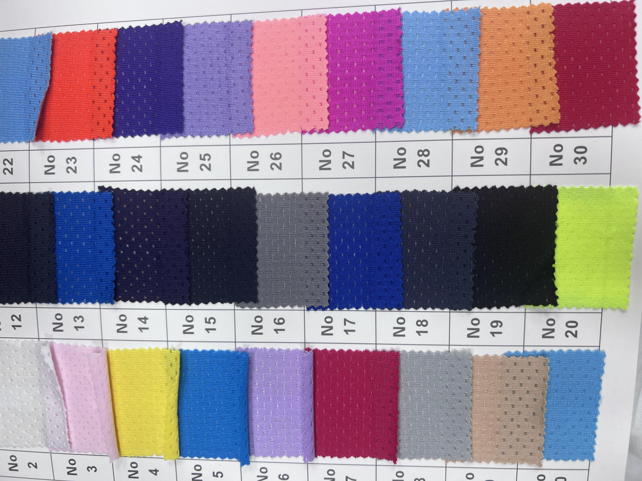 Butterfly mesh fabric knitted polyurethane mesh fabric to wick away moisture and absorb moisture for sportswear. The knitted fabric is pattern: solid color, weight (g/㎡): 180 g/㎡, main process: dyeing, ingredient: polyester, color: multi-color mixed, white , blue, please inquire via backend/WeChat for color and price