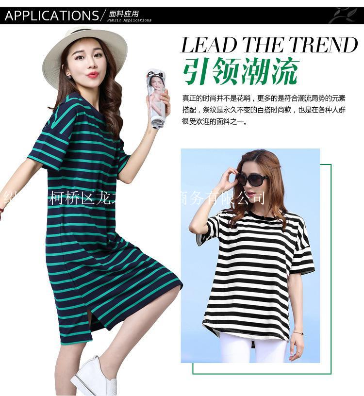 pattern stripe Main process Yarn-dyed, composite use Homewear fabrics, T-shirts/POLO shirts, knitwear/sweater fabrics Product name Khan cloth Weight 190g/㎡ elastic coefficient Super elastic weaving style knitting Element Cotton/spandex special handling Health care, moisture absorption and breathability Breathability coefficient Breathable Softness factor soft Door width 175 cm ![]()