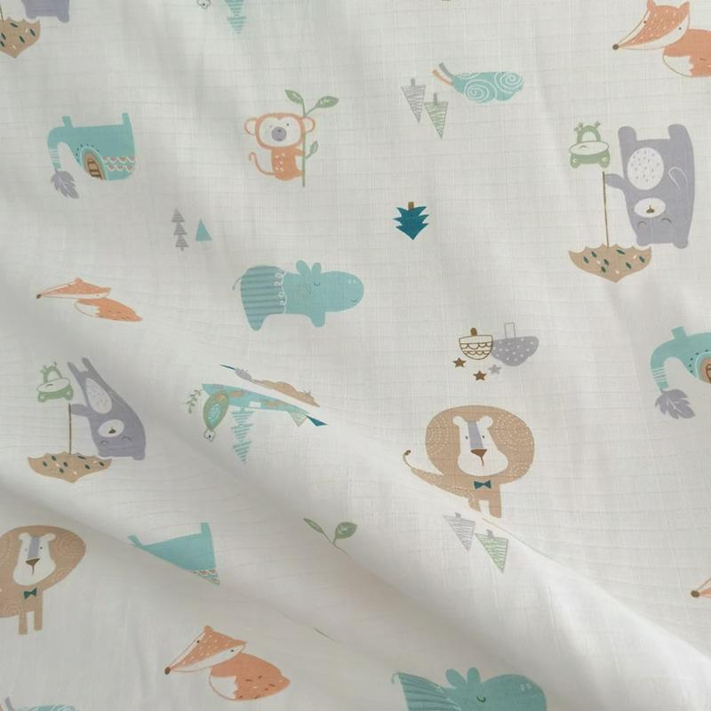 Bamboo cotton double-layer gauze fabric 1.6 meters wide double-layer gauze printed fabric gauze baby crepe children's printed fabric is pattern: animal pattern, yarn count: 40*40, main process: printing, composition and content: 70% bamboo 30% cotton, grams Weight: 130 g/㎡, other specifications: 1.6 meter wide bamboo-cotton double-layer gauze printed fabric (70% bamboo 30% cotton), weaving method: woven, category: fleece blanket fabric
