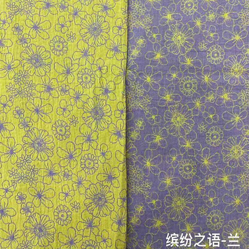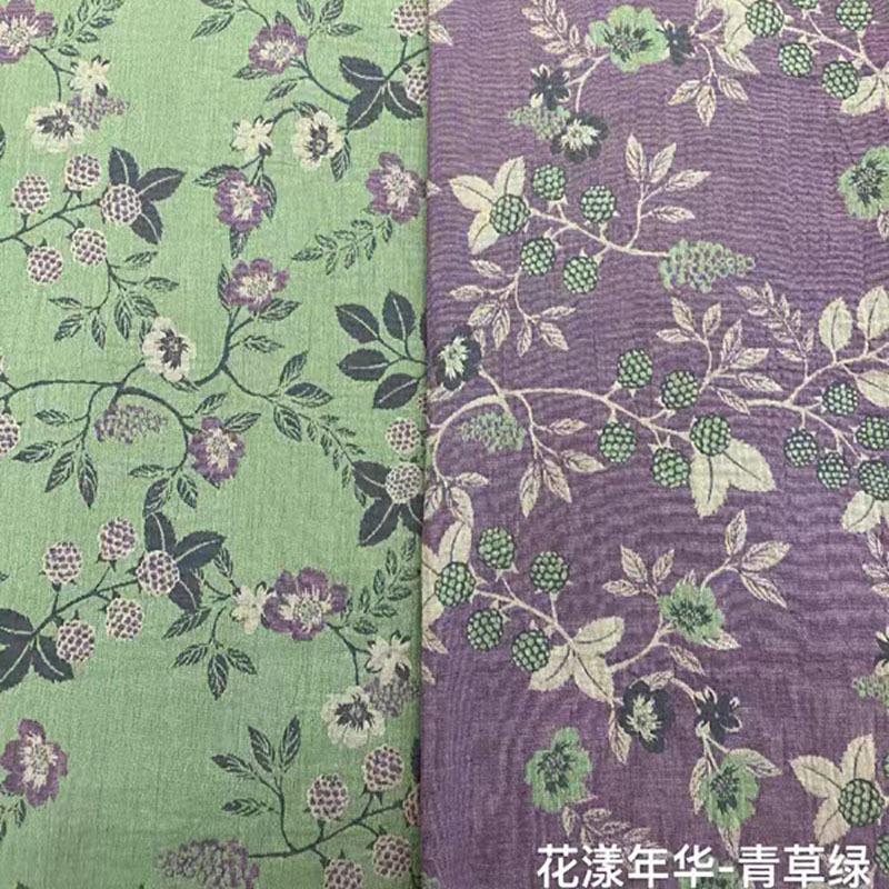 Cotton double-layer yarn pajamas fabric 40s wide washed double-layer jacquard fabric designer fabric is pattern: floral pattern, yarn count: 40*40, main process: jacquard, composition and content: 100% cotton, weight: 165 g/㎡, other specifications: 2.5 meters wide, 40-count pure cotton, cotton-dyed double-layer yarn jacquard fabric, pajamas fabric, home wear fabric, Nantong bedding fabric, double-layer yarn fabric, weaving method: woven, density: 145*85