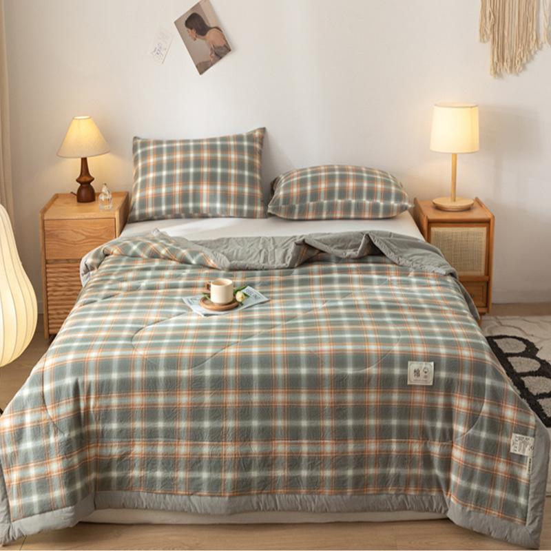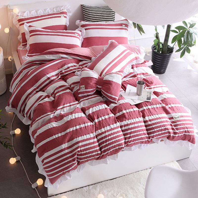 Polyester washed cotton fabric, full polyester chemical fiber washed cotton four-piece set, plaid striped printing fabric 2.5 meters wide, pattern: geometric pattern, yarn count: other, main process: dyeing, printing, composition and content: 100% polyester, printing and dyeing process: reactive printing , Weight: 80 g/㎡, Weaving method: woven