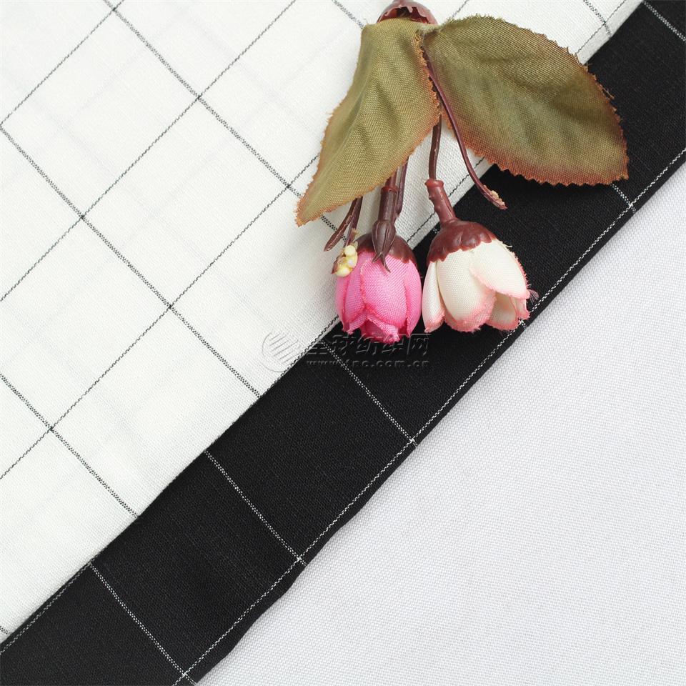 Warp yarn count 32S Weft yarn count 32S Warp component 100%R Weft yarn composition 100%R warp density 86 Weft density 52 Door width 63/64 selvedge rough edges weaving style woven fabric weave plain weave Product name Polyester nylon viscose black plaid elastic Weight 160 ![]()