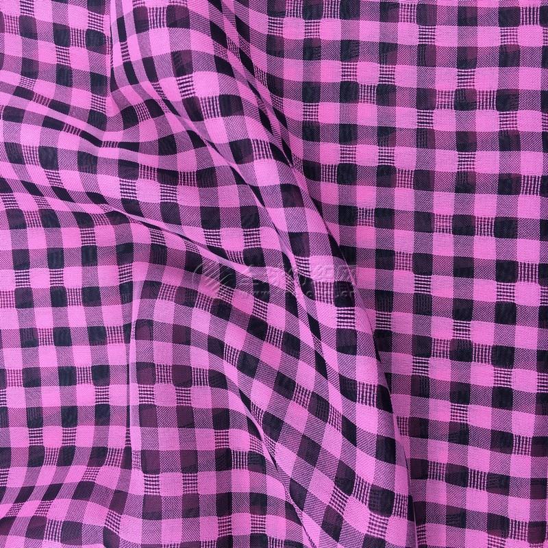 Customized cationic two-color small square chiffon gray fabric chiffon shirt fashionable women's fabric is warp yarn count: 75D, weft yarn count: 75D, warp yarn composition: 100% T, weft yarn composition: 100% T, warp yarn density: 000, weft yarn density :000, width: 150, edge: raw edge